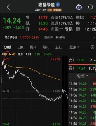 随后,头部光伏概念股不断震荡下行,隆基绿能甚至一度翻绿。